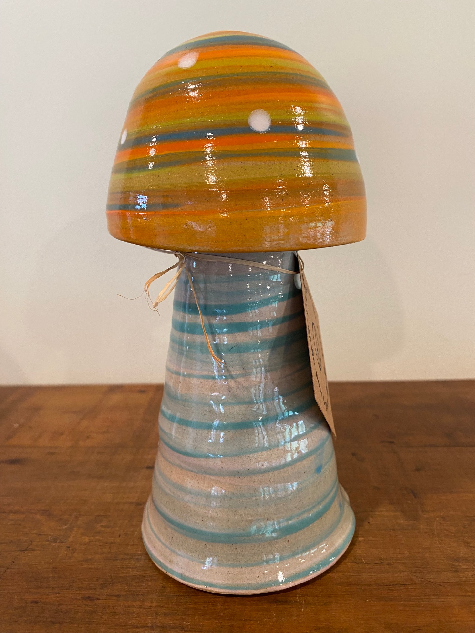 This mushroom pottery ornament offers a unique and captivating addition to any collection. Made by me, its whimsical design captures the enchanting charm of fairy-tale fungi, making it a cool statement piece for indoor or outdoor decor