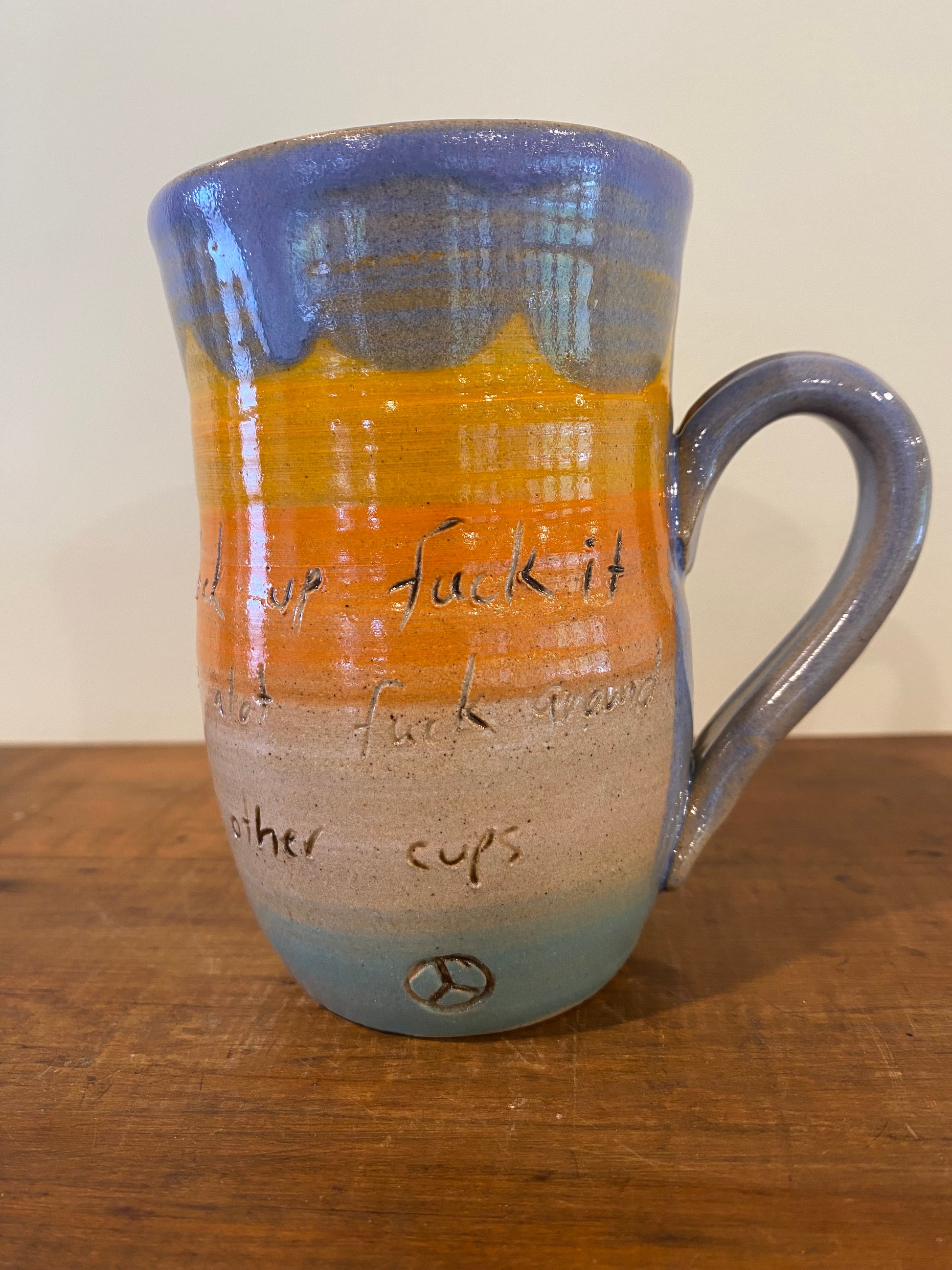 This handmade mug is a unique gift or treasured keepsake, its distinctive design and artisanal quality make it a meaningful addition to any collection, perfect for those who appreciate one-of-a-kind pottery. Durable and functional, it offers both beauty and cheeky vibes for everyday use. dishwasher safe