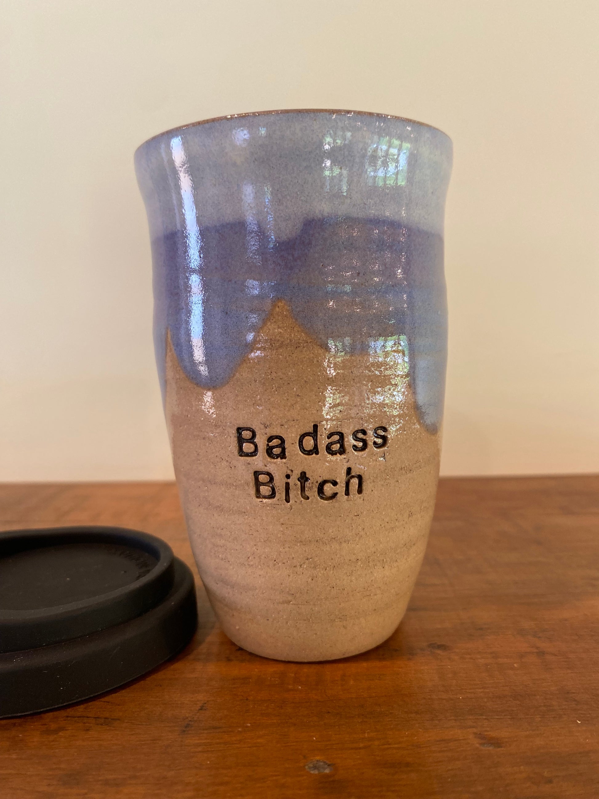 This beautiful pottery keep cup is expertly handcrafted by me, from Buff Clay Designed to be dishwasher safe, it ensures easy maintenance while supporting sustainable practices. This environmentally friendly cup reduces reliance on disposables, making it a responsible but cheeky choice for everyday use.