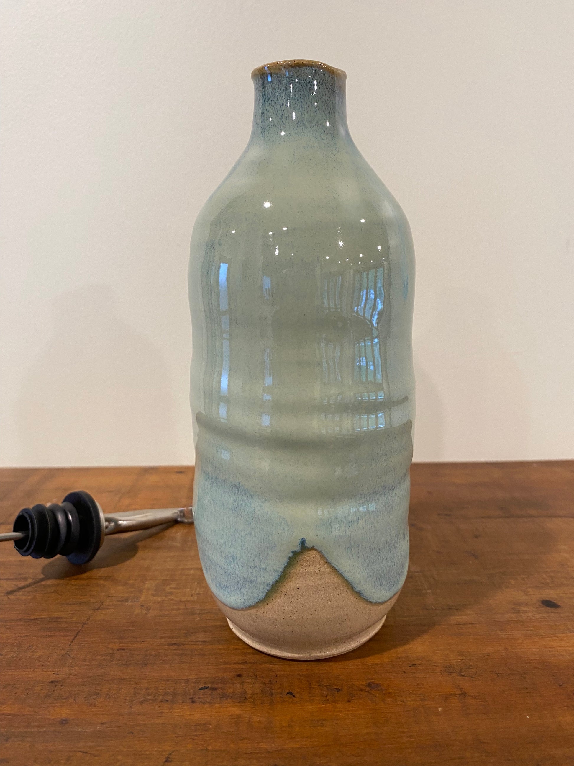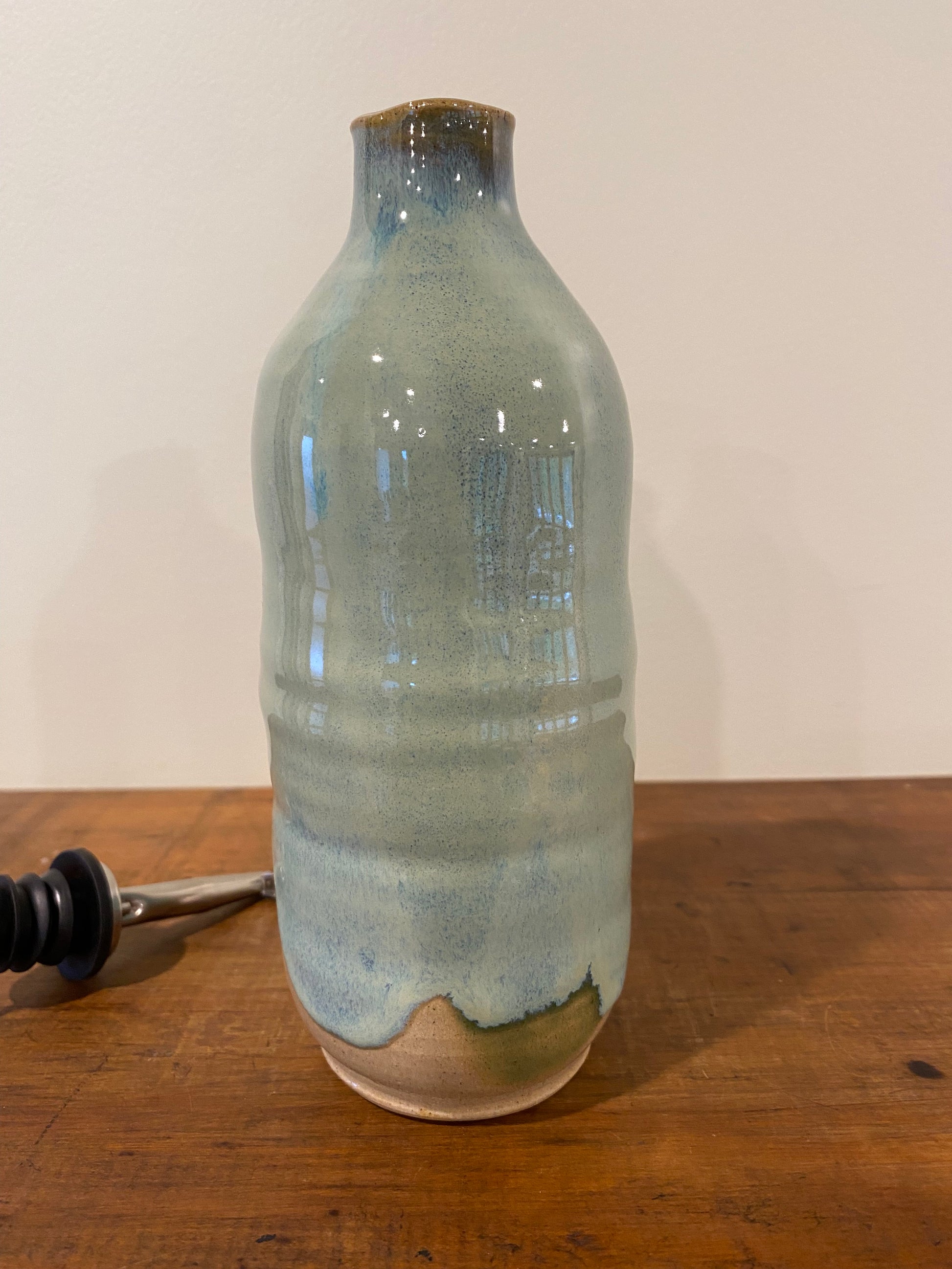 This handcrafted oil bottle, made by me, combines functionality with artisanal charm, making it an ideal vessel for oils or vinegar. Its unique pottery design ensures each piece is one-of-a-kind, adding a distinctive touch to your kitchen or dining table. Perfect as a thoughtful gift