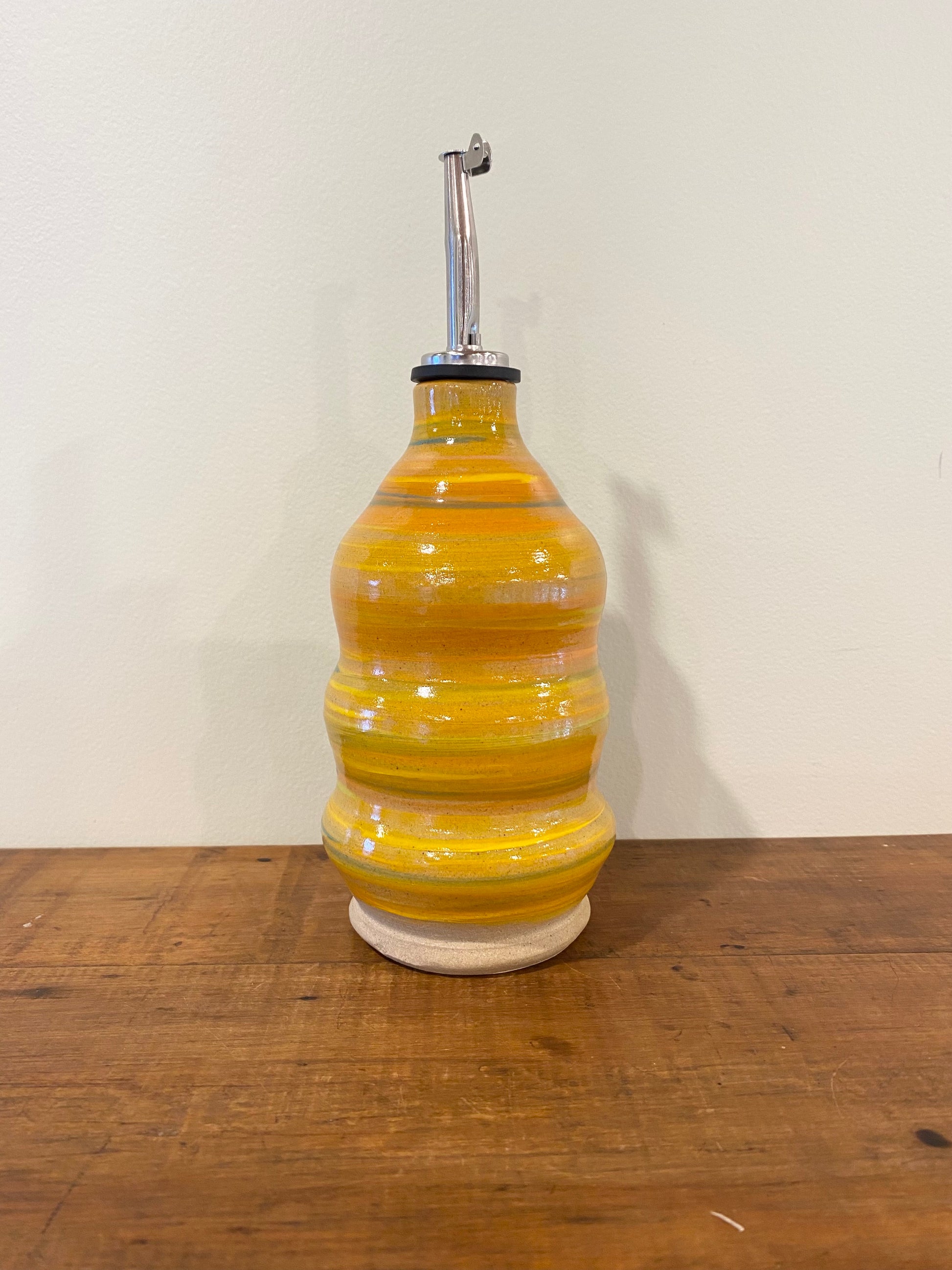 handcrafted oil bottle, made by me, an ideal vessel for oils or vinegar. Its unique pottery design ensures this piece is one-of-a-kind, adding a distinctive touch to your kitchen or dining table. Perfect as a thoughtful gift