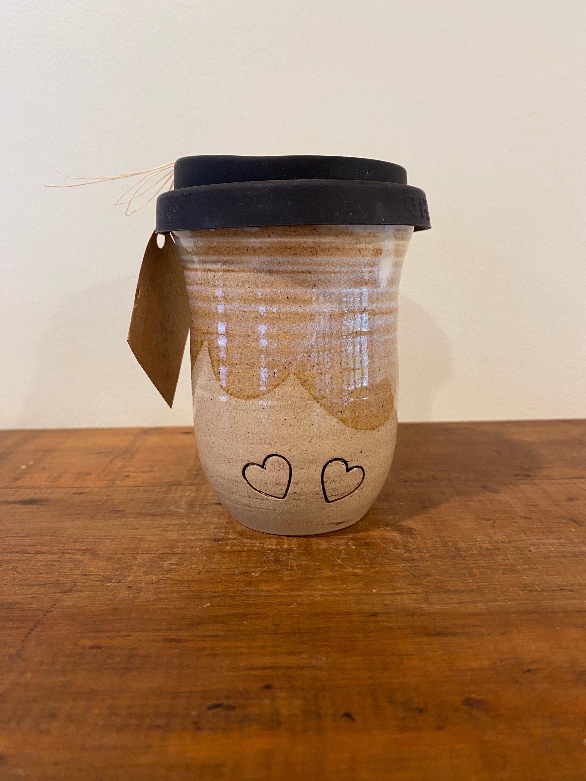 The 'Hearts ' pottery keep cup is expertly handcrafted by me, from Buff Clay, offering a unique blend of natural beauty and durability. Designed to be dishwasher safe, it ensures easy maintenance while supporting sustainable practices. This environmentally friendly cup reduces reliance on disposables, making it a responsible and elegant choice for everyday use.